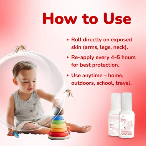The Care Sprinkler Mosquito Repellent (Babies & Kids) is crafted using only eucalyptus oil and citronella oil—two naturally trusted essential oils known for their mosquito-repelling properties. This formulation is completely oil-based and water-free, allowing the natural oils to remain concentrated without dilution.