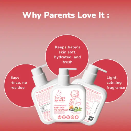 The Care Sprinkler Gentle Baby Top-to-Toe Wash is formulated to cleanse gently without disrupting the skin’s natural moisture balance. Its mild, tear-free formula makes it suitable for both hair and body, allowing parents to use a single, gentle cleanser for everyday baby care.